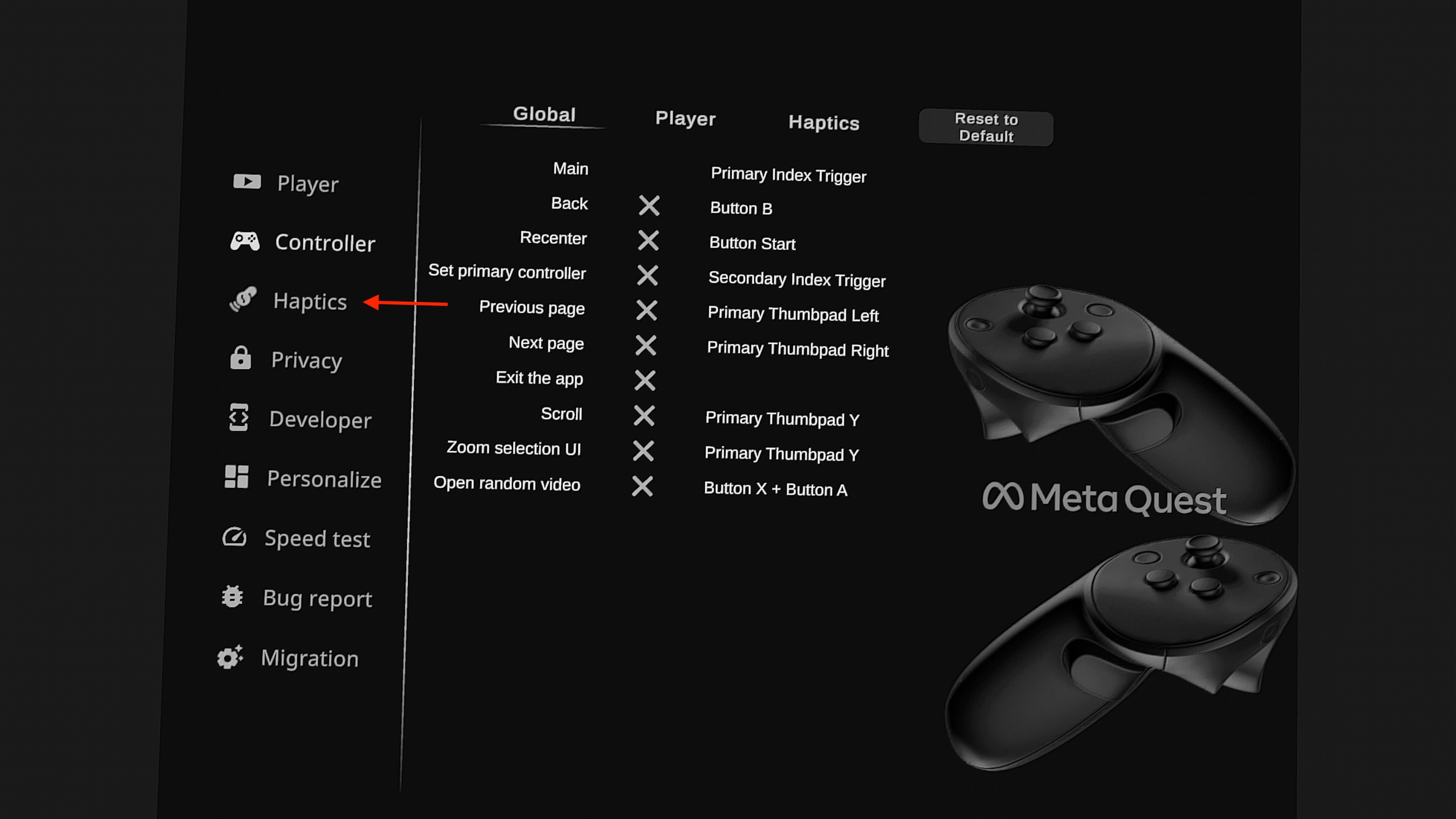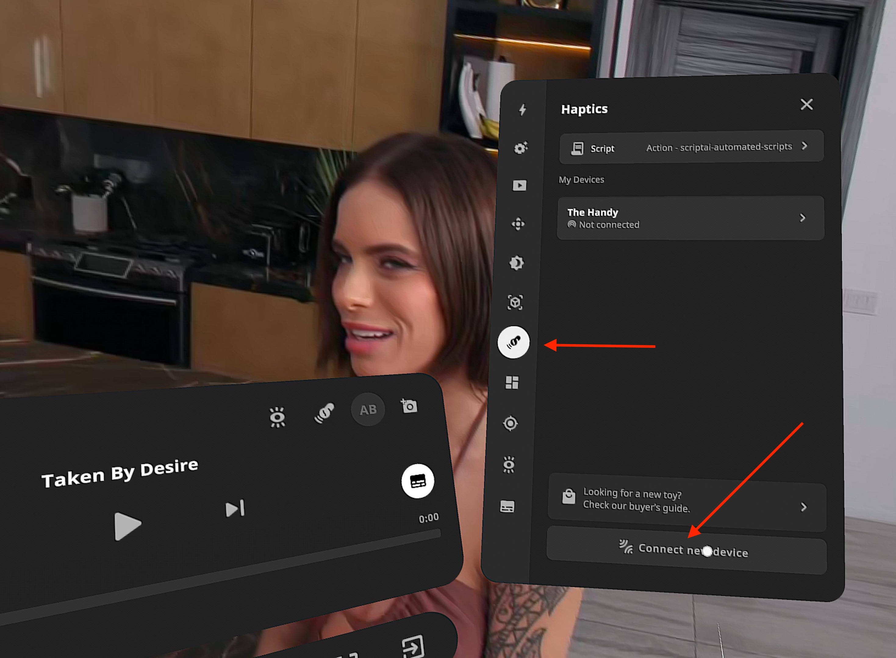 4. Click on the 'Additional Settings' icon (right side of video playback menu) -> Click on the 'Haptics' icon tab -> Click on 'CONNECT DEVICE'