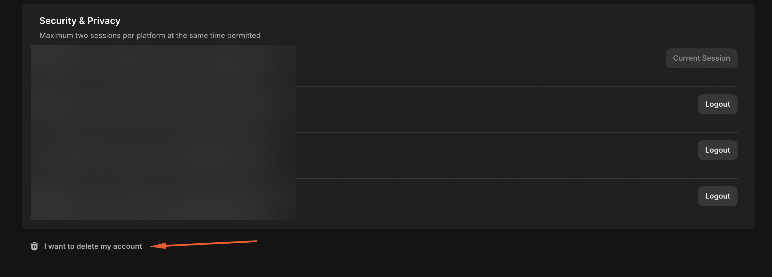 Click on the "I want to delete my account" button.